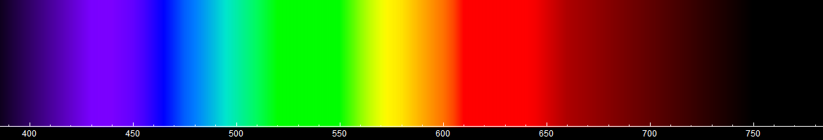 An das Spektrum des sichtbaren Lichts (Wellenlänge von 390 nm bis 780 nm) schließen sich für unser Auge nicht sichtbare Bereiche elektromagnetischer Strahlung an: